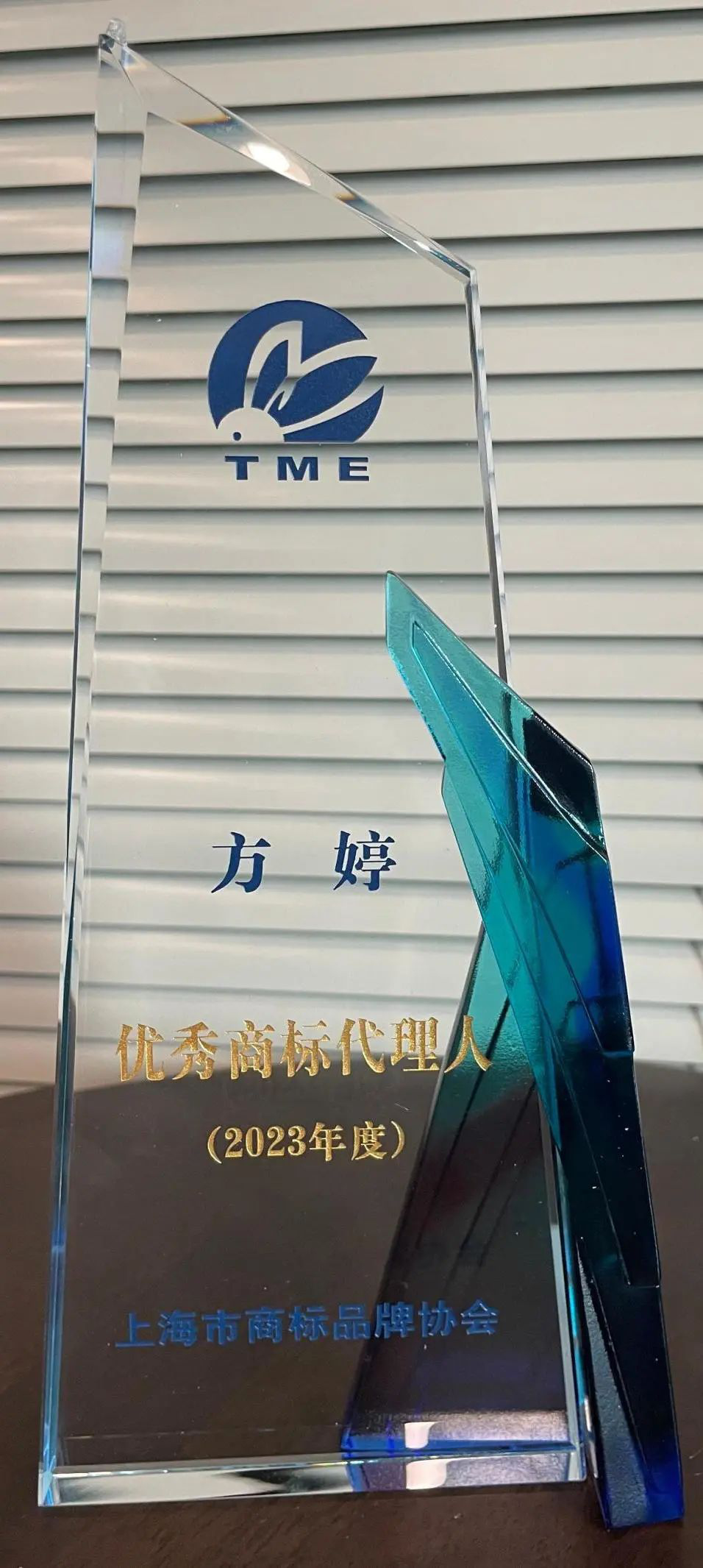 集佳上海分所方婷律师被评为2023年度“上海市优秀商标代理人”。