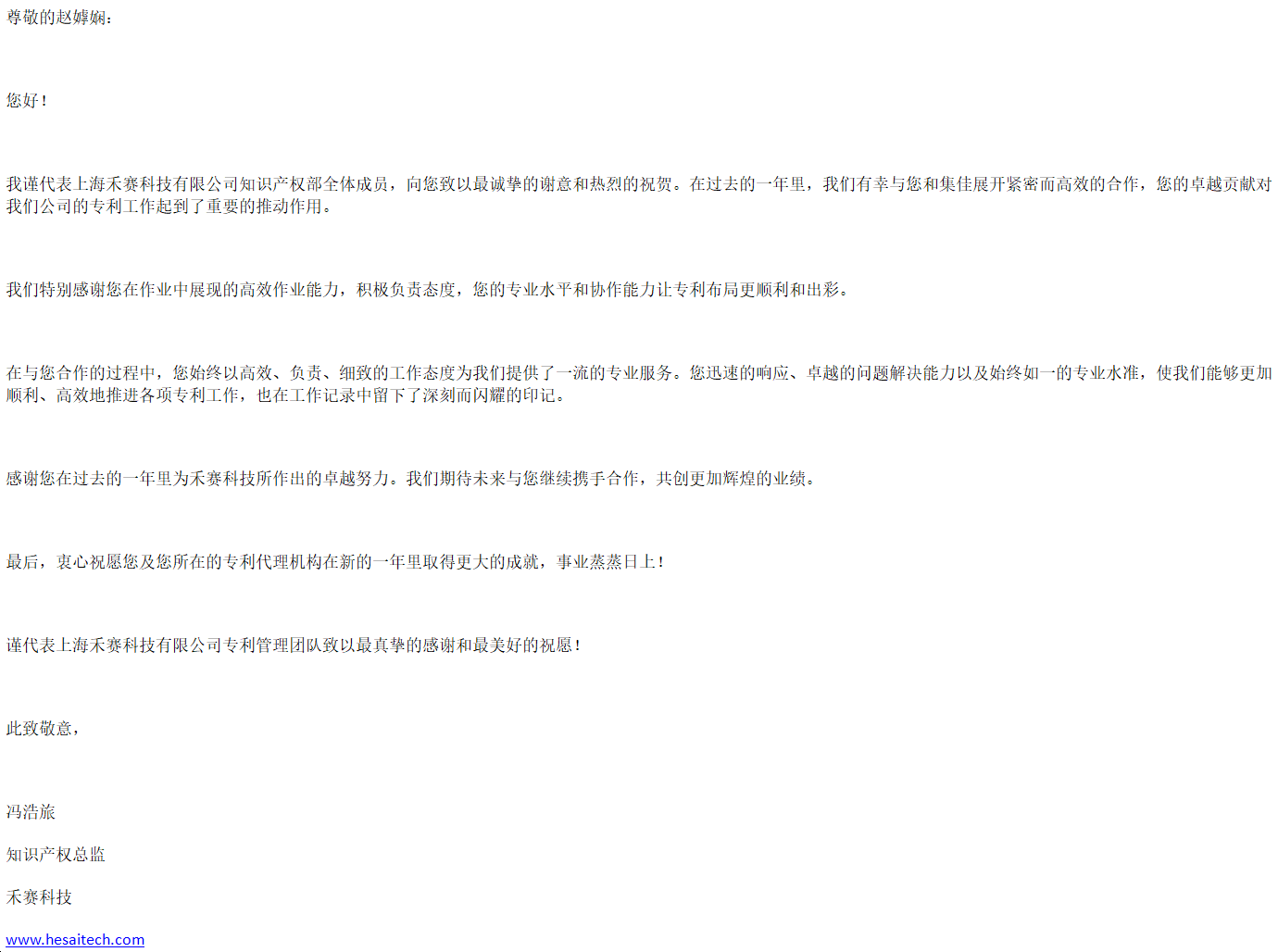 新年伊始,集佳喜获来自客户上海禾赛科技有限公司的感谢信,对五星体育上海分所提供的优质服务表示感谢。