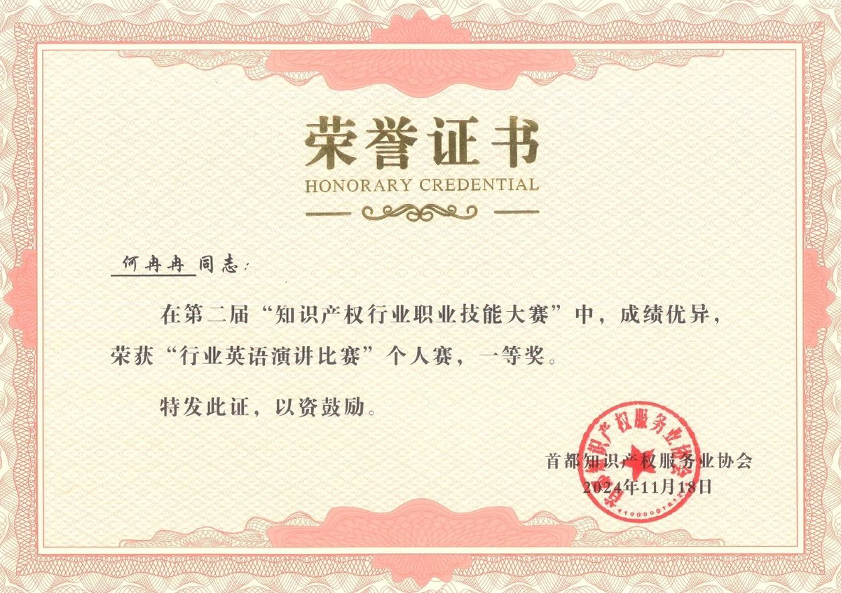 本届大赛以“激扬创新梦想 铸就精彩人生”为主题,秉持公平公正的原则,以展现知识产权人的职业风采、提升知识产权从业人员专业水平、引领知识产权行业向高质量发展为目标,为行业青年人才提供了交流、展示、历练的平台。“行业英语演讲比赛”检验从业人员专业英文口语表达能力;“商标综合技能比赛”检验从业人员商标检索、制定商标确权策略,撰写确权方案的能力。比赛中,集佳参赛选手通过精彩的演讲与答辩,展现了出色的专业能力与良好的团队协作精神,受到评委们的一致好评。