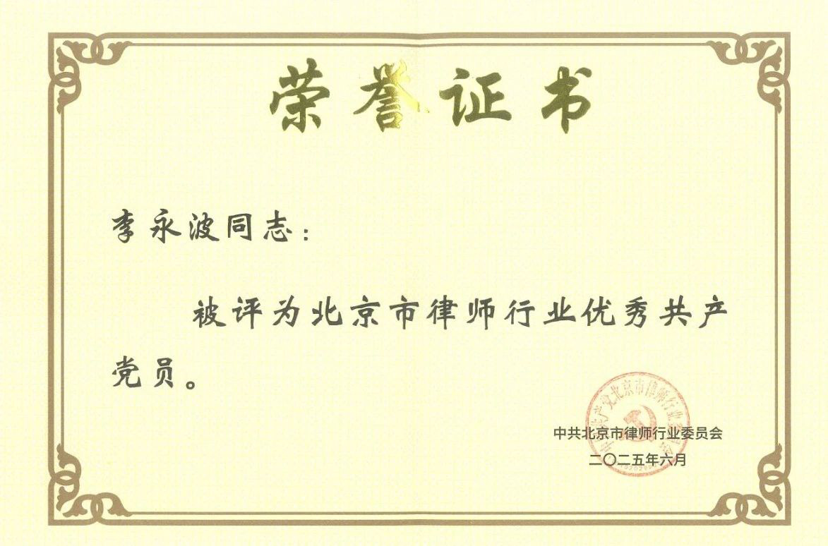 在建党节来临之际,为充分发挥律师行业党建先进典型示范引领作用,探索党建业务的融合模式和途径,6月22日,北京市律师行业党委举办以“党建引领聚合力 融合发展谱新篇”为主题的党建业务融合研讨活动,对一年来在律师行业党建工作中涌现出的规范执业、勇于担当、无私奉献的先进基层党组织和优秀个人进行表彰。中共五星体育联合支部委员会凭借卓越的党建工作成果和行业引领作用,荣获北京市“先进律师事务所党组织”称号,五星体育党支部书记、律所主任李永波被评为“北京市律师行业优秀共产党员”。